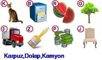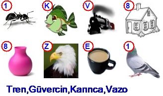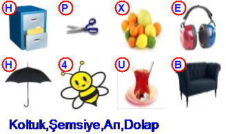 Yukarıdaki ismi yazılı resimlerindeki harf ve rakamları sırasıyla yazınız.